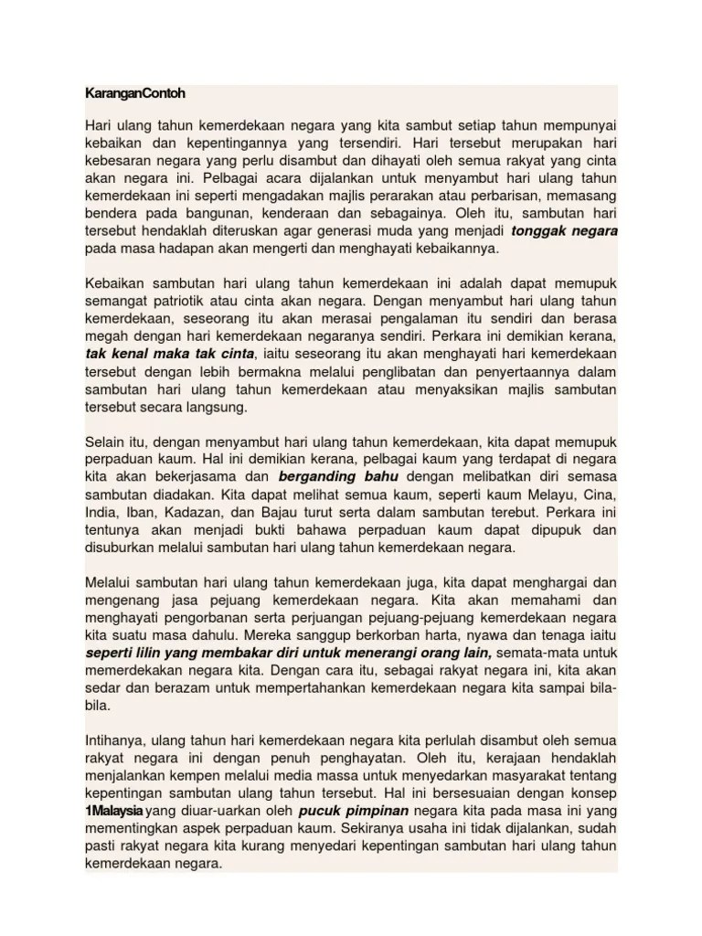 Acara pada hari itu dimulakan dengan nyanyian lagu negaraku, lagu . Contoh karangan laporan sambutan kemerdekaan peringkat sekolah blog ini baru dilancarkan dan masih dalam proses penambahbaikan. Tahir, guru besar sekolah kebangsaan seri perling 2 turut menyampaikan sepatah dua kata. Contoh karangan sambutan hari kemerdekaan di sekolah saya 編集する. You can do the exercises online or download the worksheet as pdf. Contoh karangan sambutan hari guru. Kami berharap agar blog ini nanti boleh menjadi . Pemenang semasa majlis penutup sambutan bulan kemerdekaan sebagai tanda penghargaan.